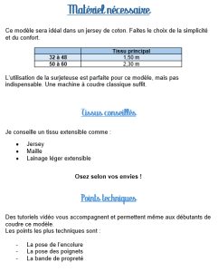 Le livret contient un guide pour vous aider dans le travail de l’élasticité des tissus.