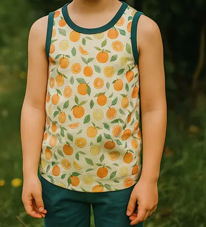 Un basique mixte, confortable et rapide à coudre, idéal pour les journées ensoleillées, les batailles d’eau et les vacances à la plage