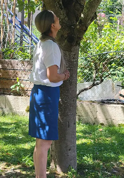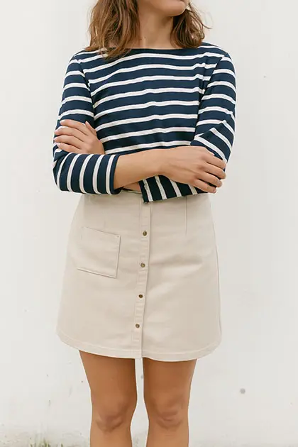 La jupe Quartz est une jupe droite boutonnée sur le milieu devant. Son style est très épuré avec l’absence de ceinture.